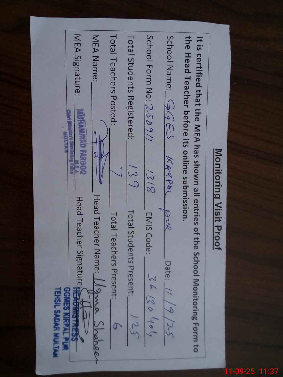 | EMIS Code: 36130404 | Name of School: GGES KARPAL PUR | |||