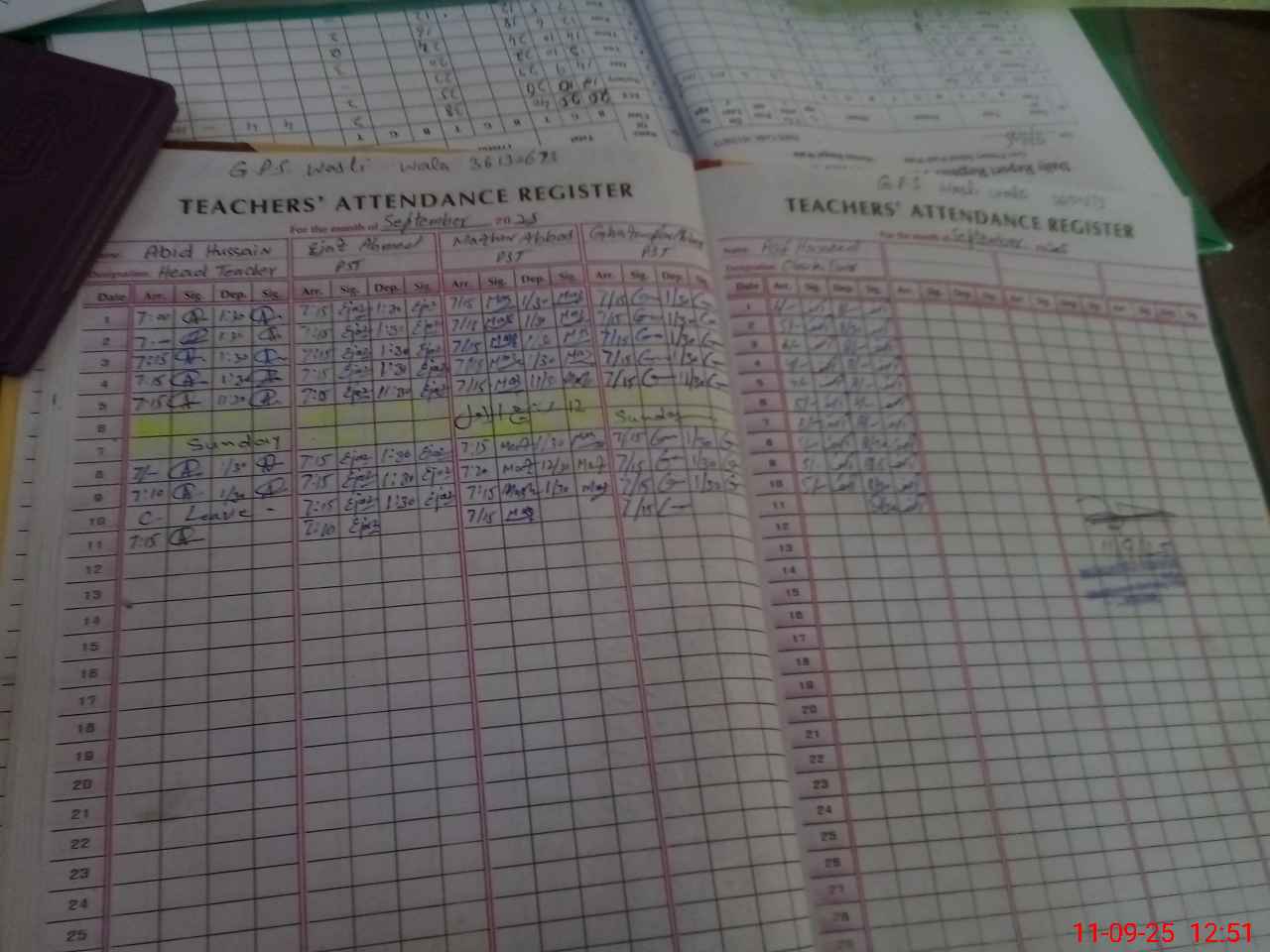 | Name: AB**** HU**** Designation: (School Headmaster's/Headmistress's) PST/PTC/JV Phone/Cell Number: 03**** |