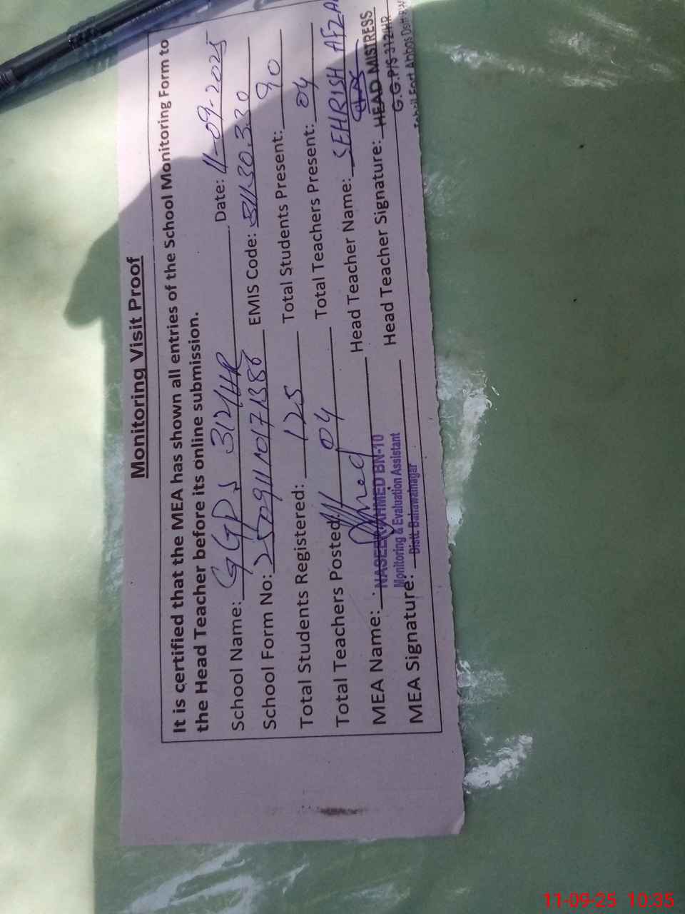 | EMIS Code: 31130330 | Name of School: GGPS CHAK NO. 312 HR | |||