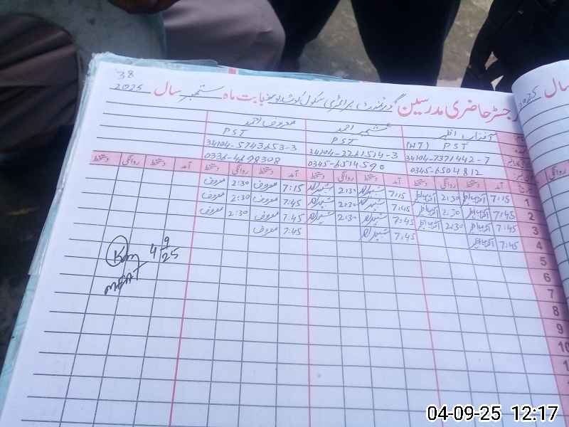 | Name: AF**** AZ**** Designation: (School Headmaster's/Headmistress's) PST Phone/Cell Number: 03**** |