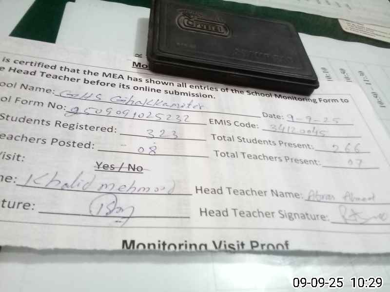 | Attendance Register | Head Teacher | MEA with School | Visit Proof |