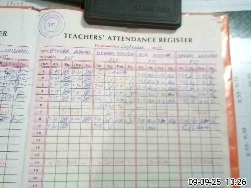 | CNIC | Full Name | Designation | R/C | Absence During Last Calender Month |