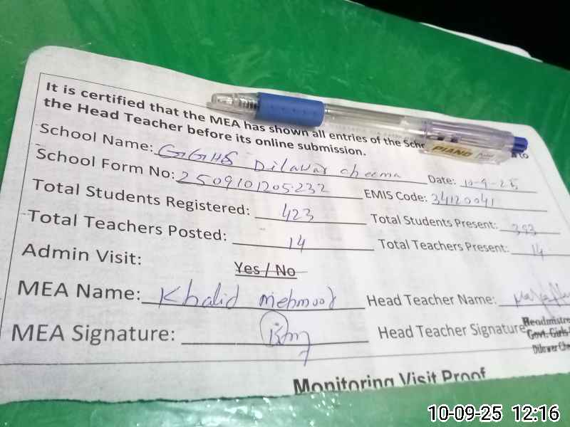 | EMIS Code: 34120041 | Name of School: GGHS DILAWAR CHEEMA | |||