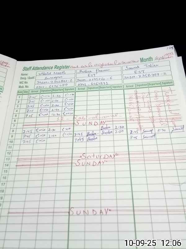| Name: NA**** IL**** Designation: (School Headmaster's/Headmistress's) S.S.T.(GEN) Phone/Cell Number: 03**** |