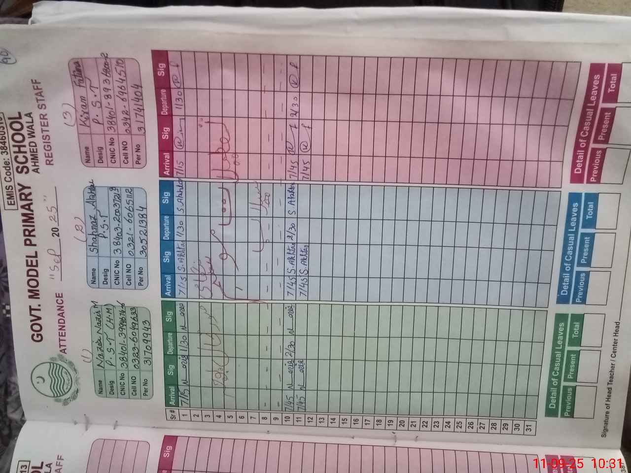 | CNIC | Full Name | Designation | R/C | Absence during last cal. month |