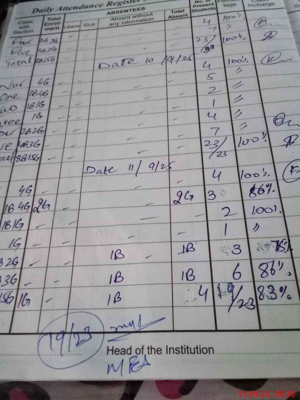 | Attendance Register | Head Teacher | MEA with School | Visit Proof |