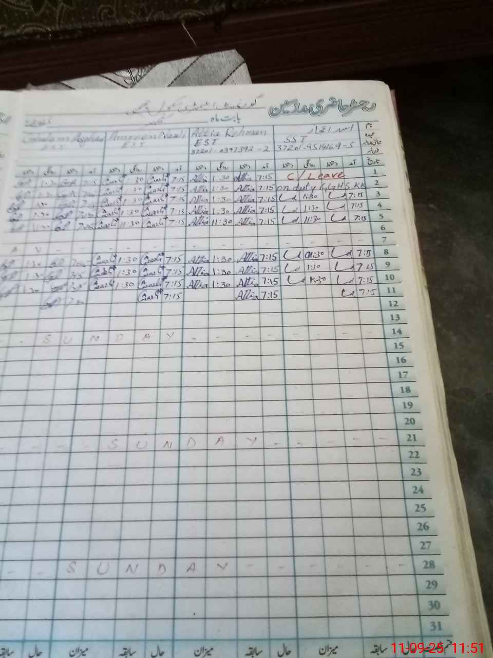 | CNIC | Full Name | Designation | R/C | Absence During Last Calender Month |