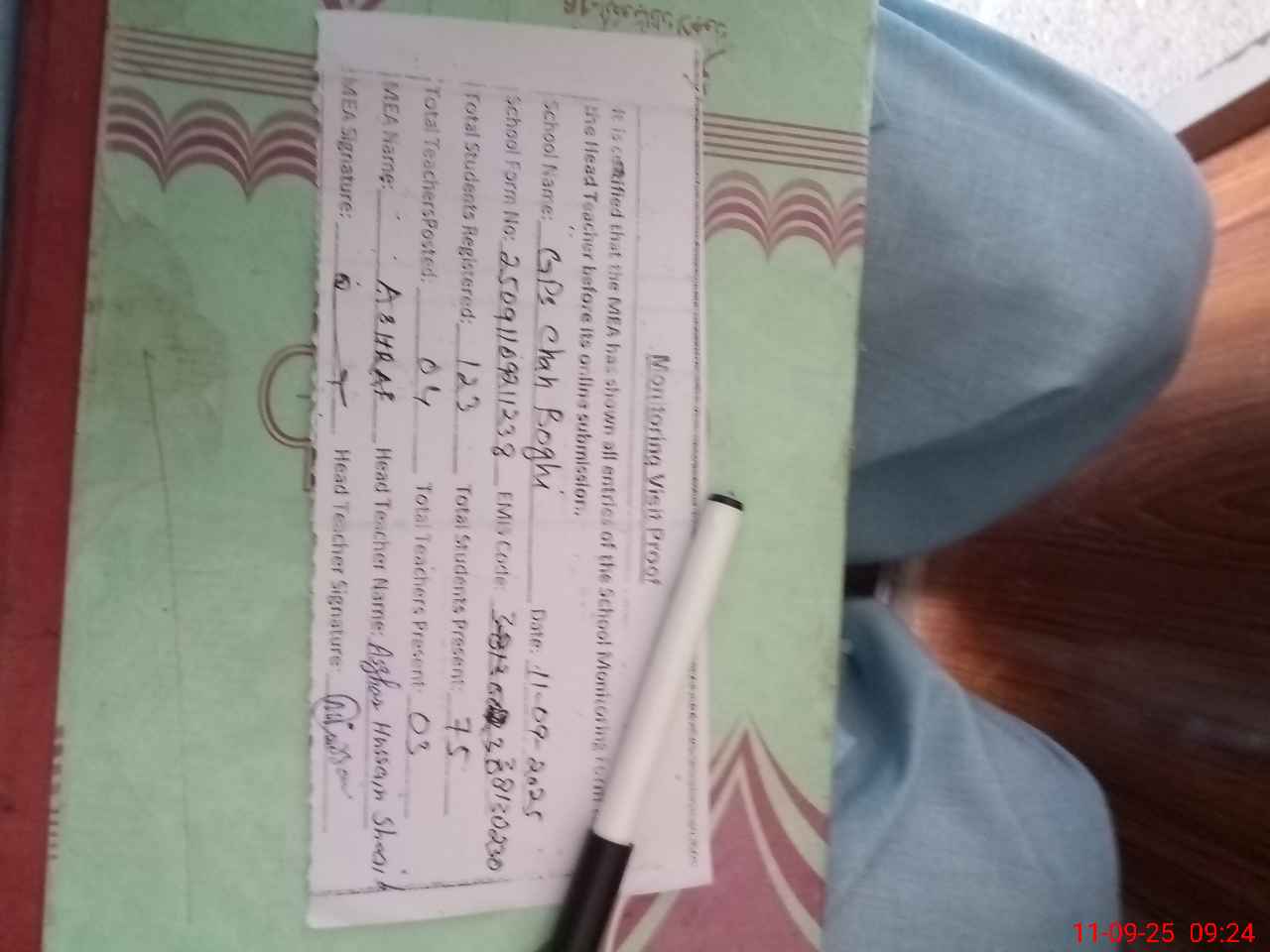 | Attendance Register | Head Teacher | MEA with School | Visit Proof |