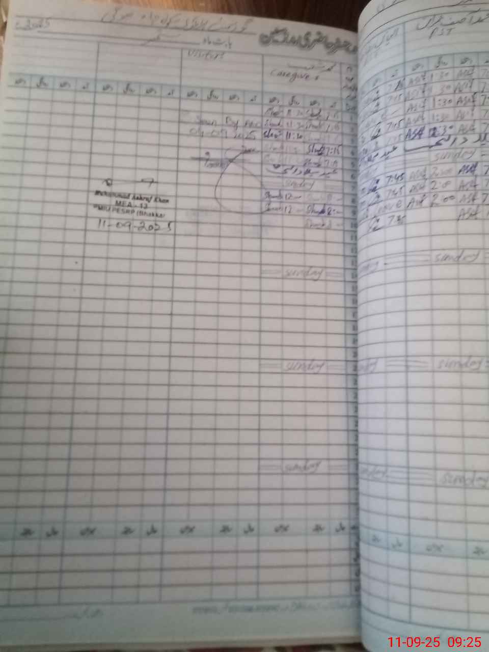 | Monitoring Date: 11-09-2025 | Start Time: 11-09-2025 09:00 AM | End Time: 11-09-2025 09:26 AM | Name of MEA: Mu**** As**** | |