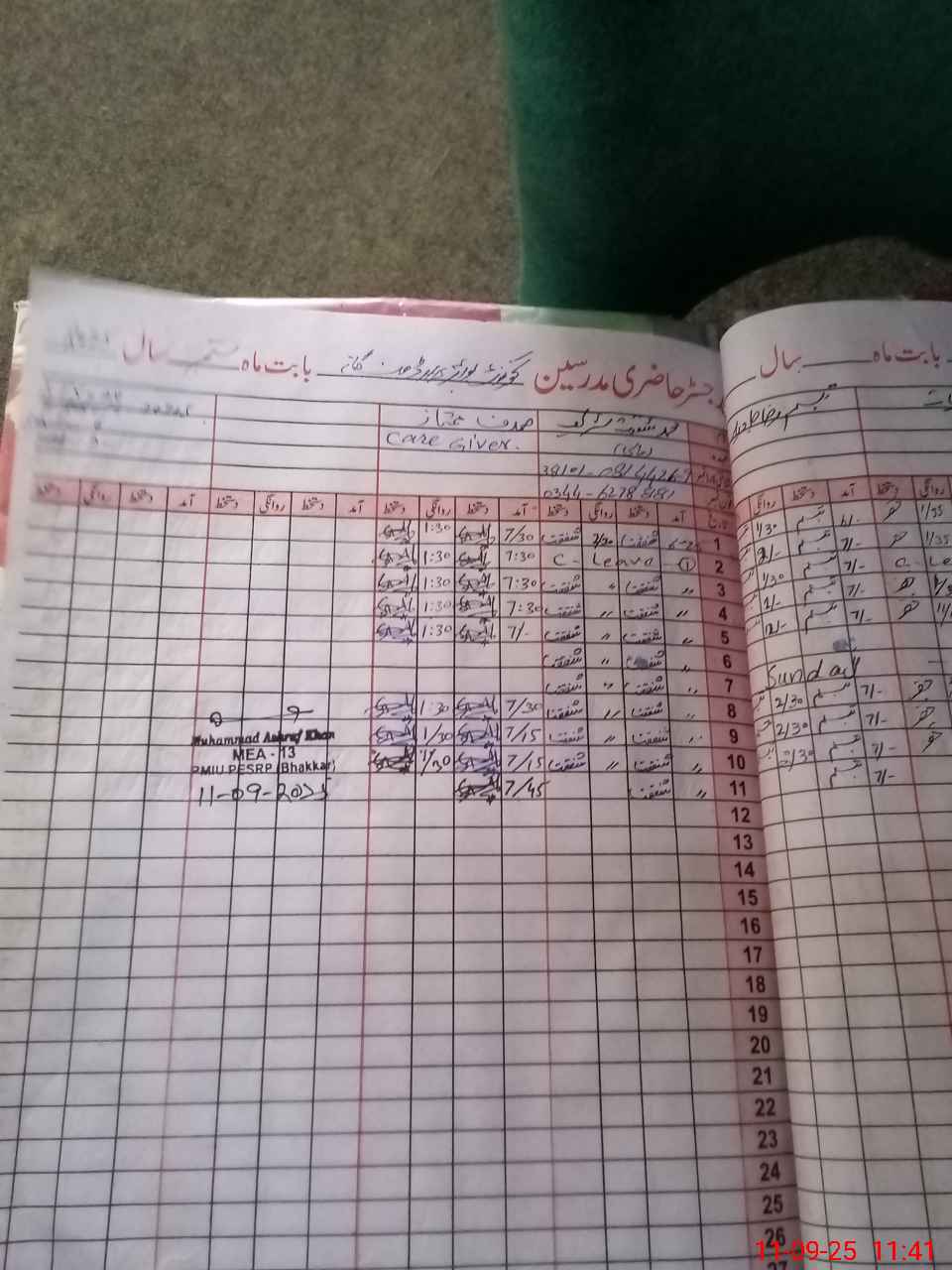 | CNIC | Full Name | Designation | R/C | Absence During Last Calender Month |