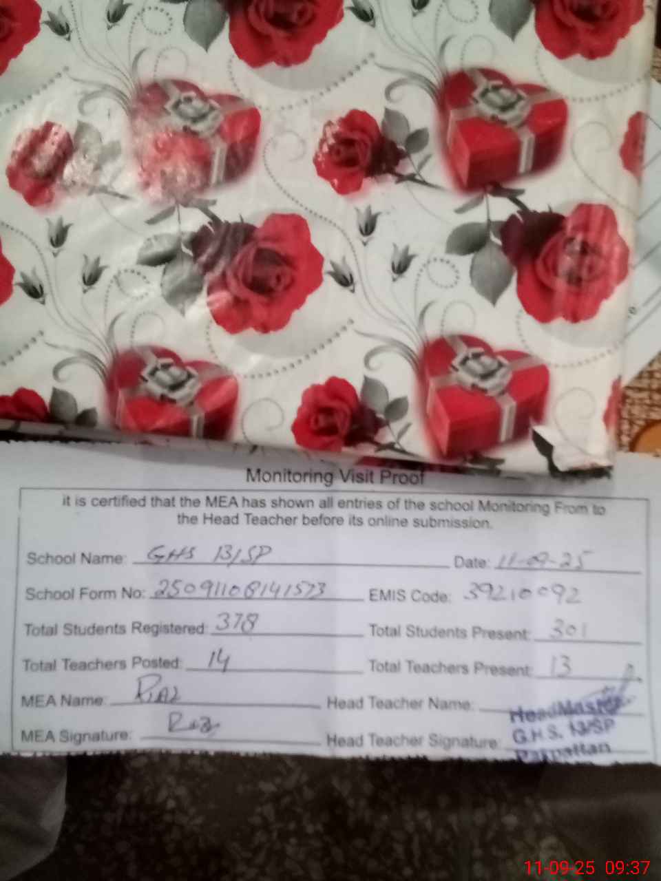 | EMIS Code: 39210092 | Name of School: GHS 13/SP P.O PAKPATTAN | |||