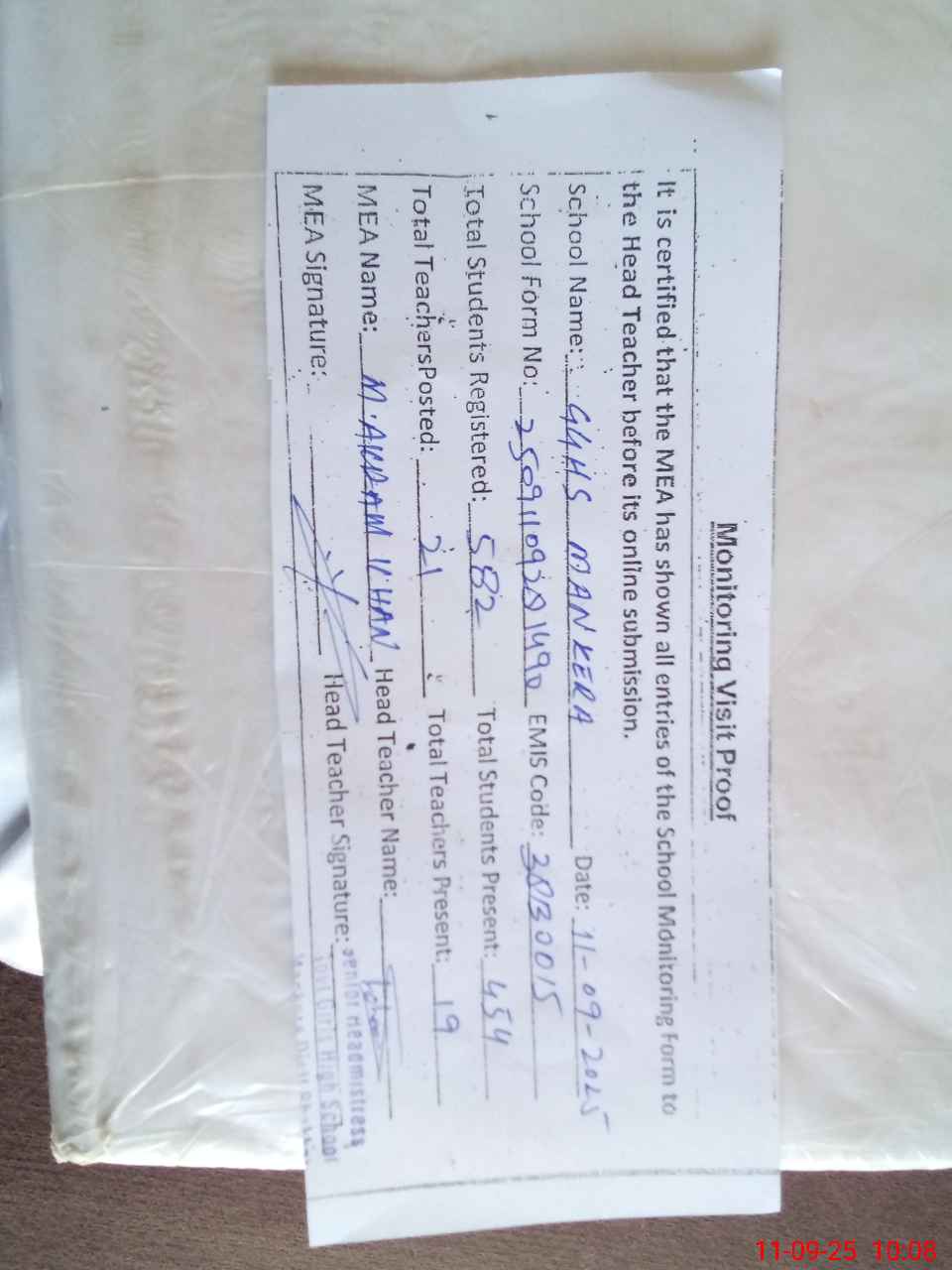| EMIS Code: 38130015 | Name of School: GGHS MANKERA | |||
