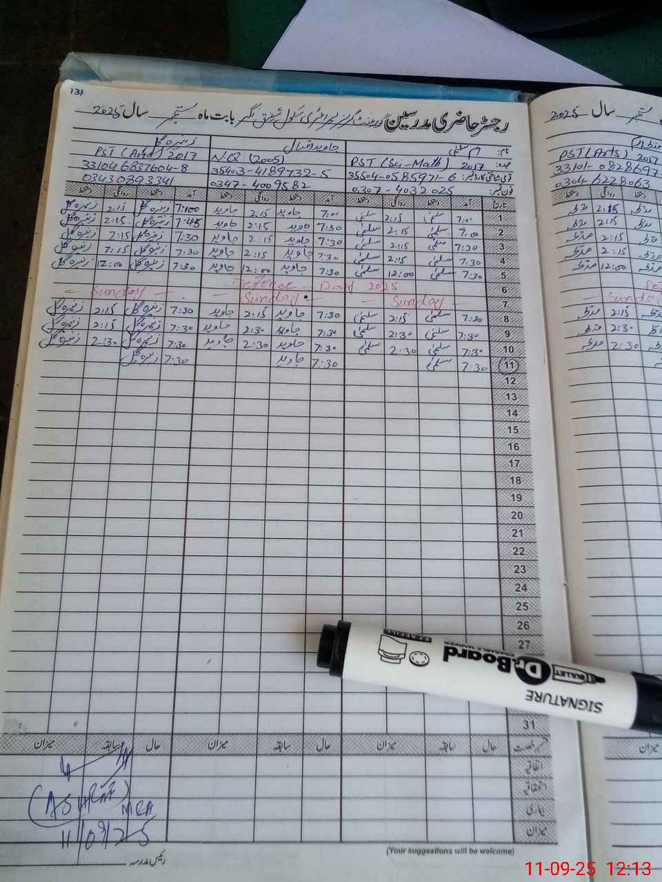 | CNIC | Full Name | Designation | R/C | Absence During Last Calender Month |