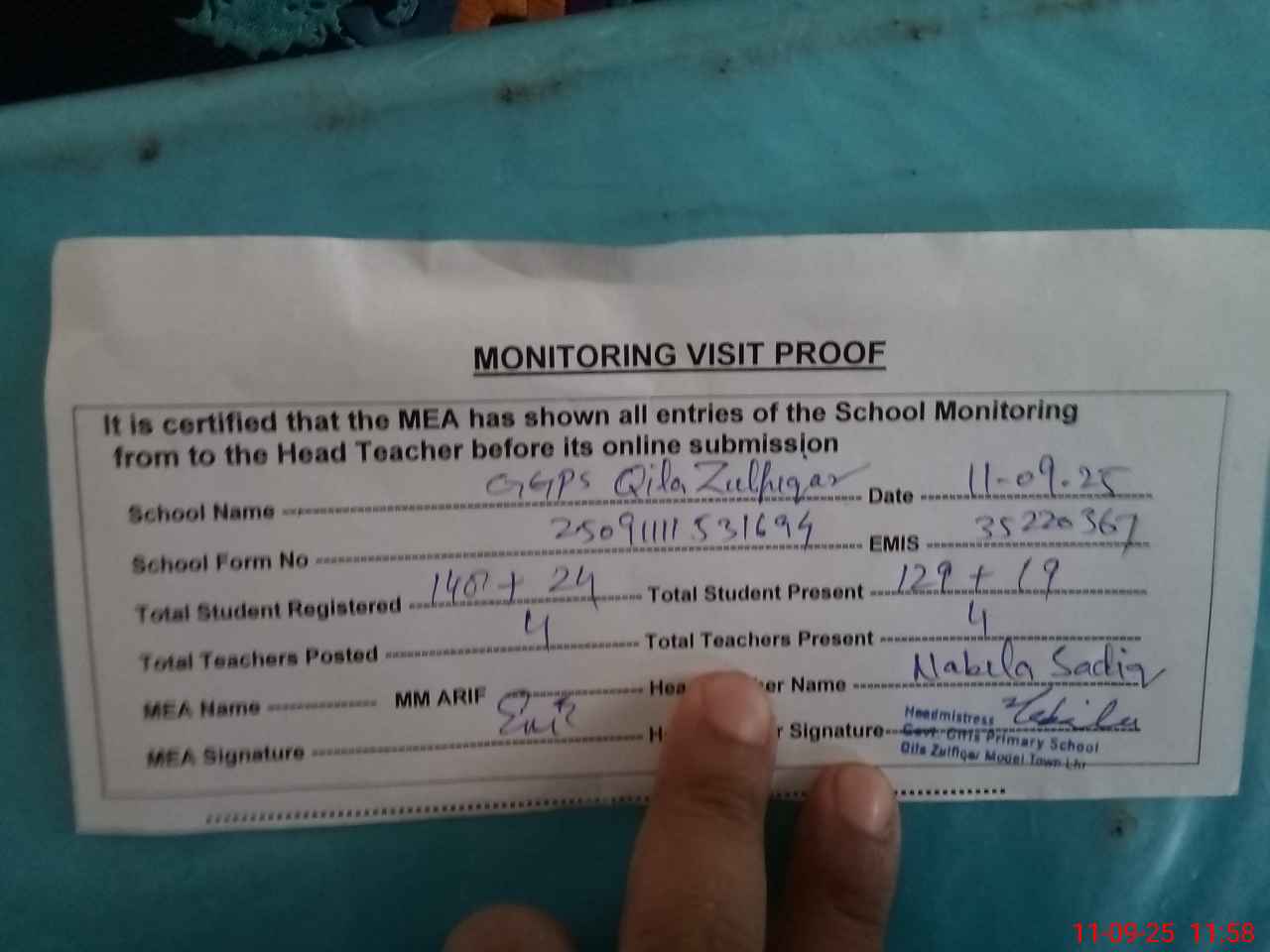 | EMIS Code: 35220367 | Name of School: GGPS QILA ZULFIQAR | |||