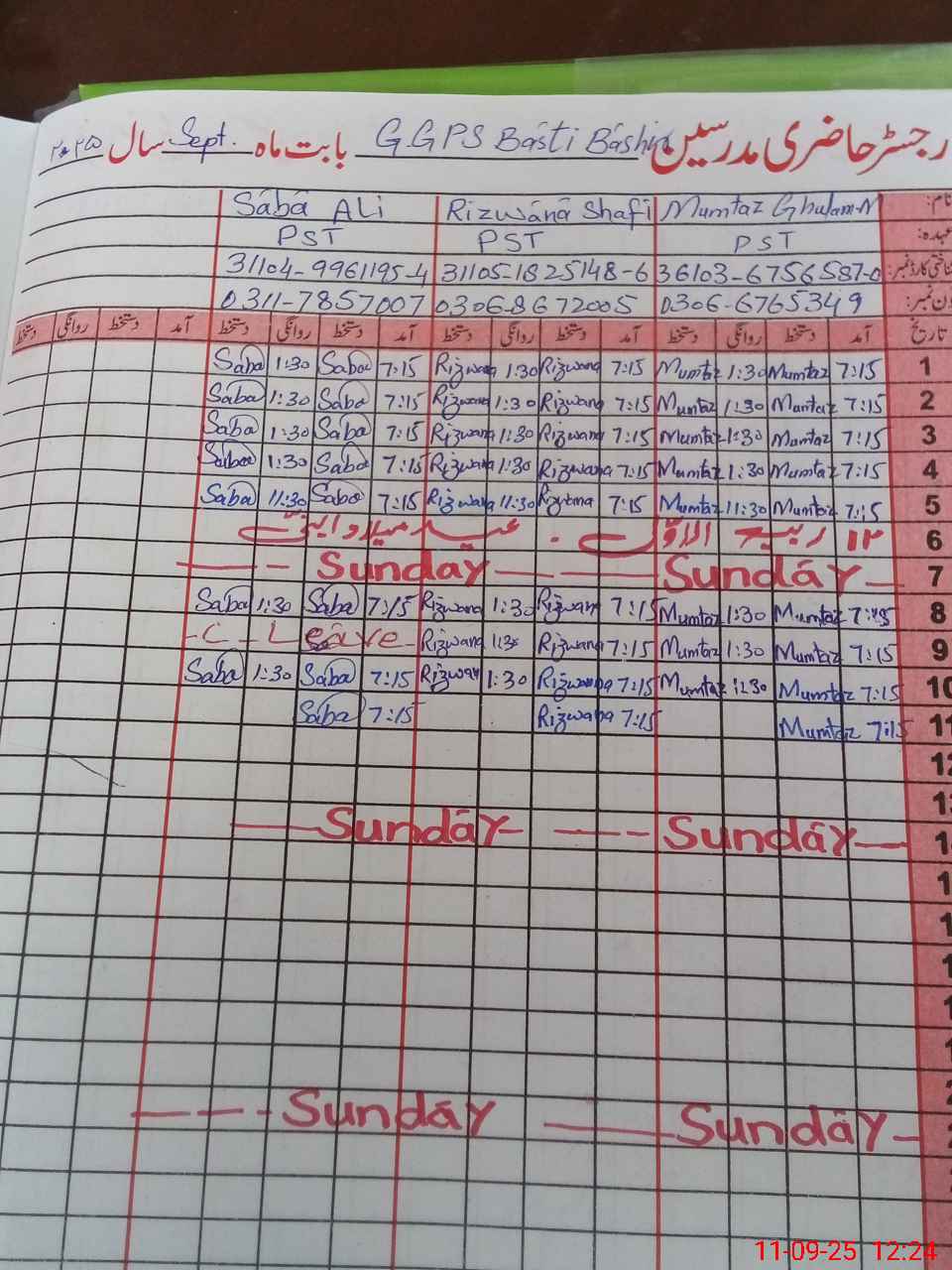 | Leave | Duty | Absent | Maternity | Medical | Ex- Pak |