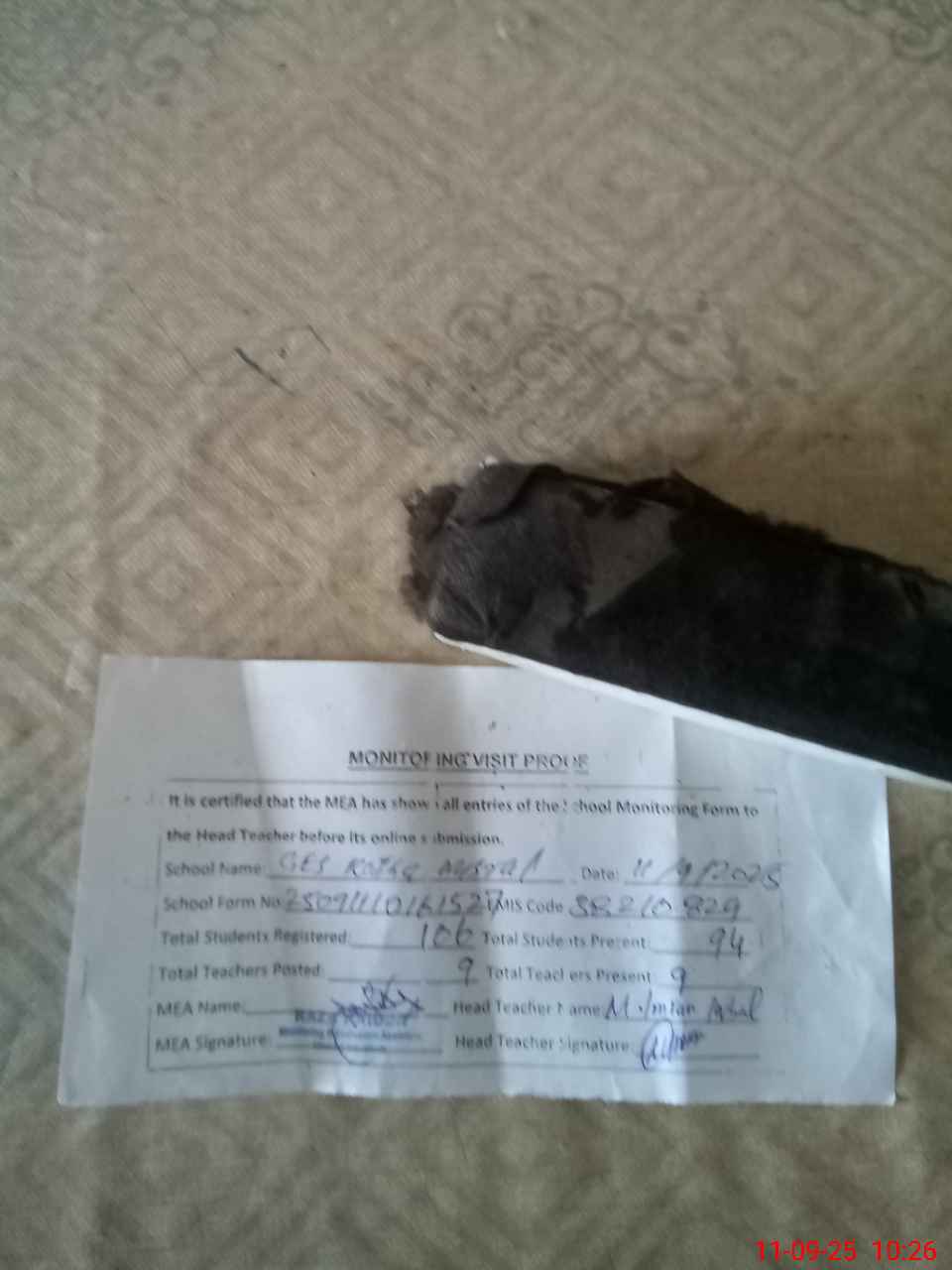| Attendance Register | Head Teacher | MEA with School | Visit Proof |