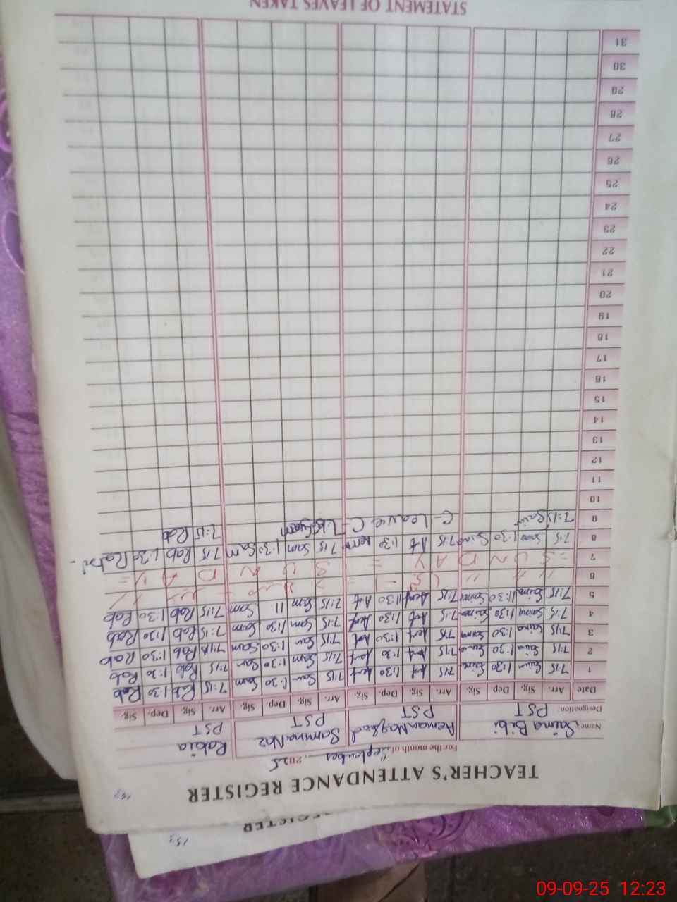 | Name: SA**** BI**** Designation: (School Headmaster's/Headmistress's) PST Phone/Cell Number: 03**** |