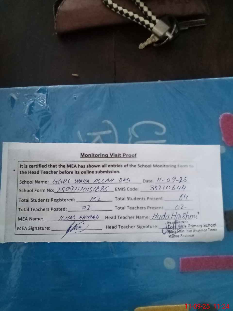 | EMIS Code: 35210644 | Name of School: GGPS WARA ALLAH DAD | |||
