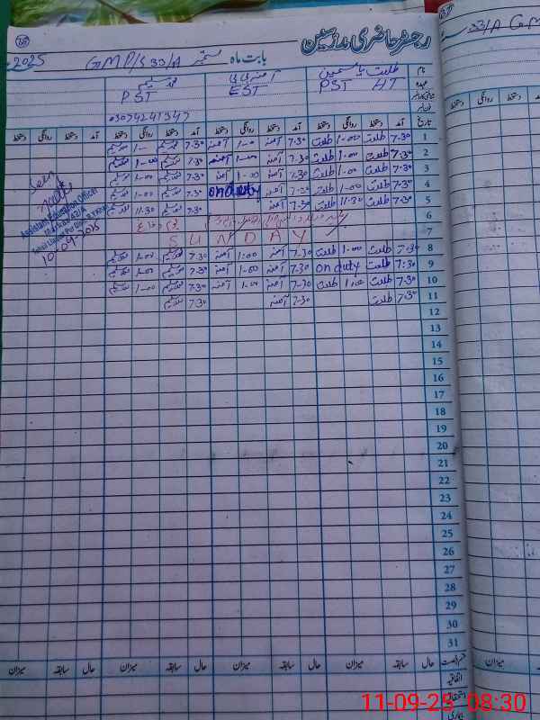 | Name: TA**** YA**** Designation: (School Headmaster's/Headmistress's) PST Phone/Cell Number: 03**** |