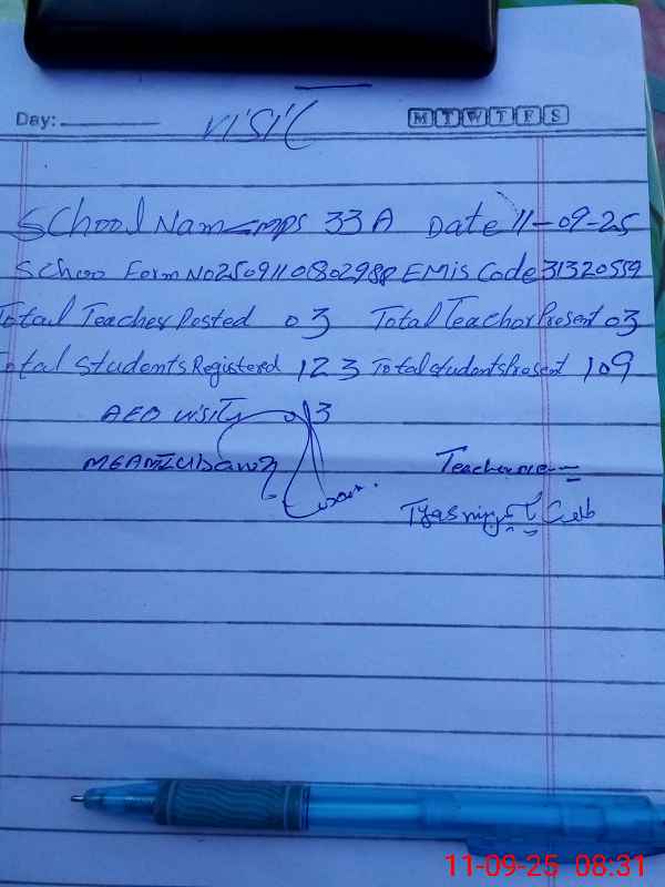 | EMIS Code: 31320559 | Name of School: GMPS CHAK NO. 33/A | |||