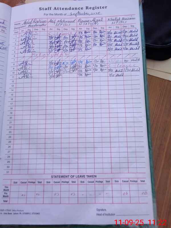 | Name: AS**** MA**** Designation: (School Headmaster's/Headmistress's) SST Phone/Cell Number: 03**** |