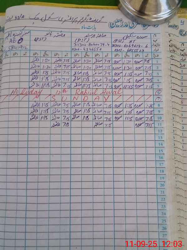 | Name: SI**** SH**** Designation: (School Headmaster's/Headmistress's) PST Phone/Cell Number: 03**** |