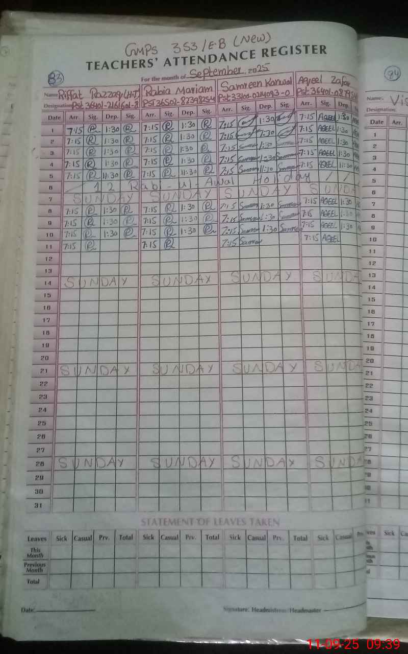 | Name: RI**** RA**** Designation: (School Headmaster's/Headmistress's) PST Phone/Cell Number: 03**** |