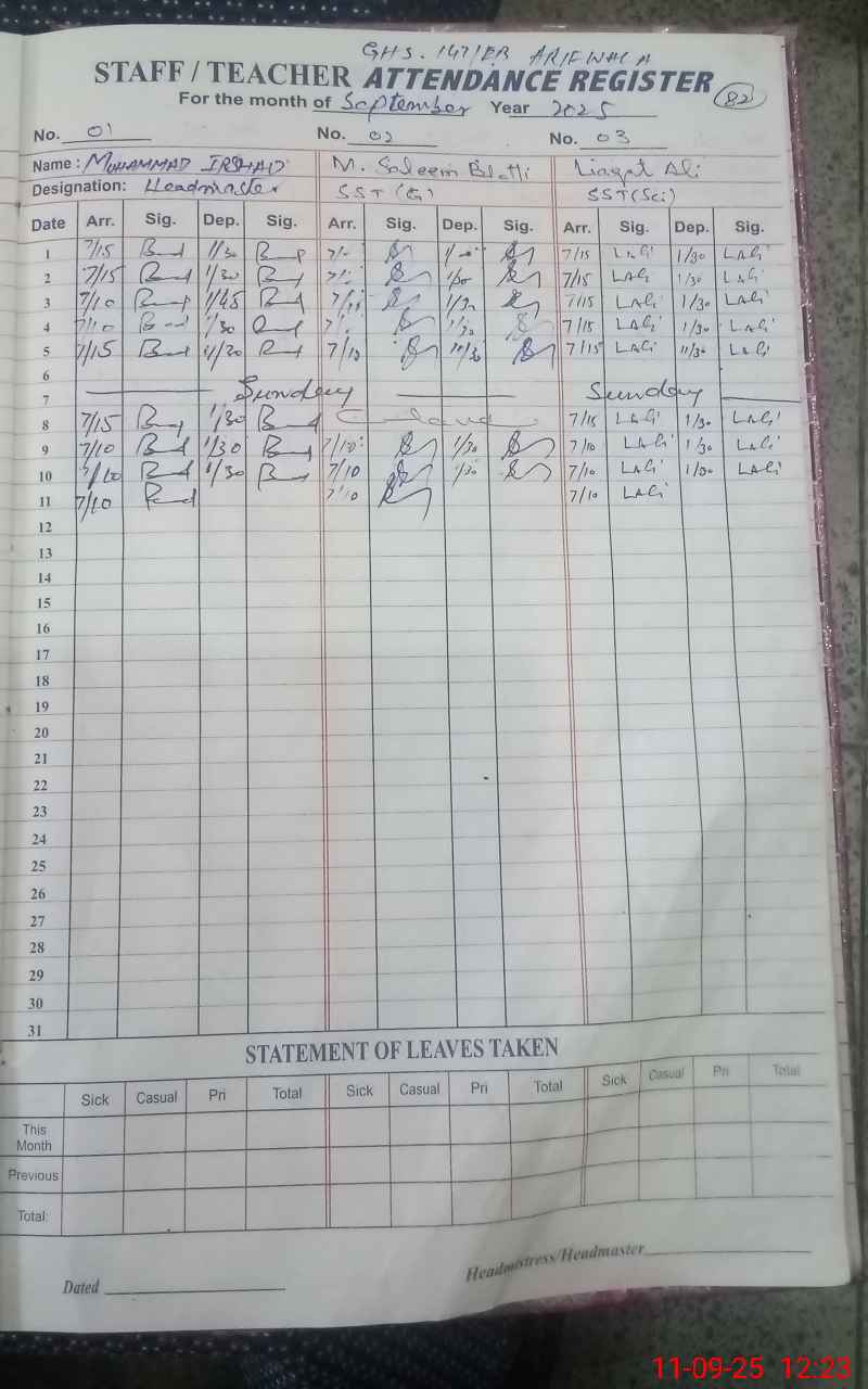 | Attendance Register | Head Teacher | MEA with School | Visit Proof |