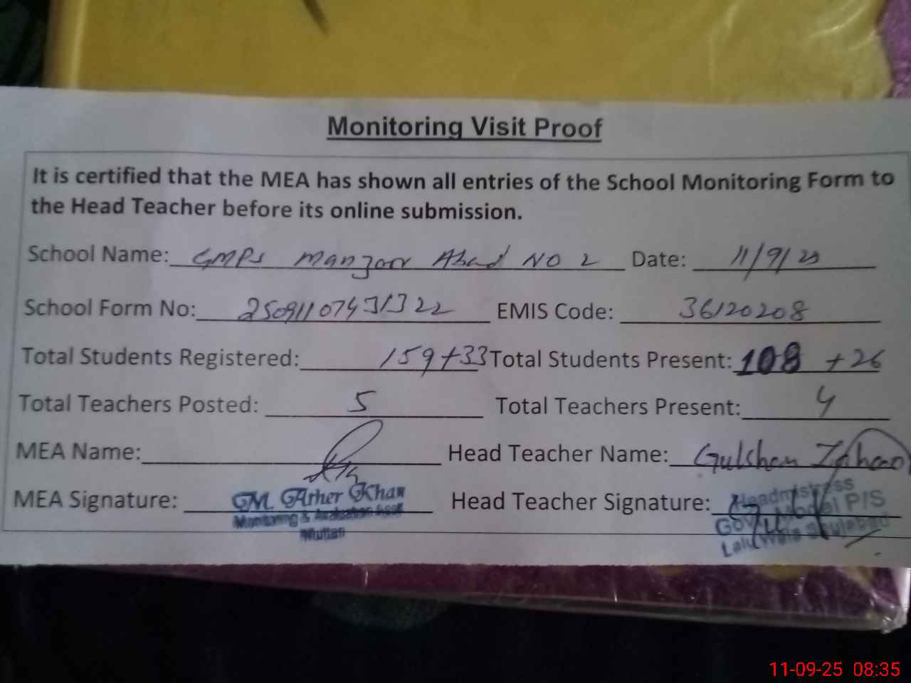 | EMIS Code: 36120208 | Name of School: GMPS MANZOOR ABAD NO. 2 | |||