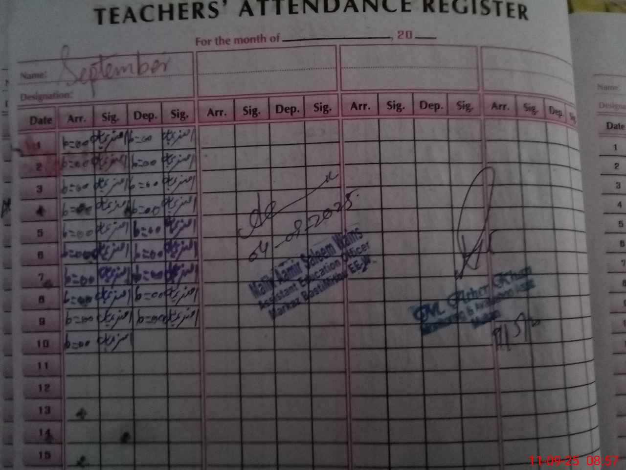 | Monitoring Date: 11-09-2025 | Start Time: 11-09-2025 08:54 AM | End Time: 11-09-2025 09:31 AM | Name of MEA: MU**** AT**** KH**** | |