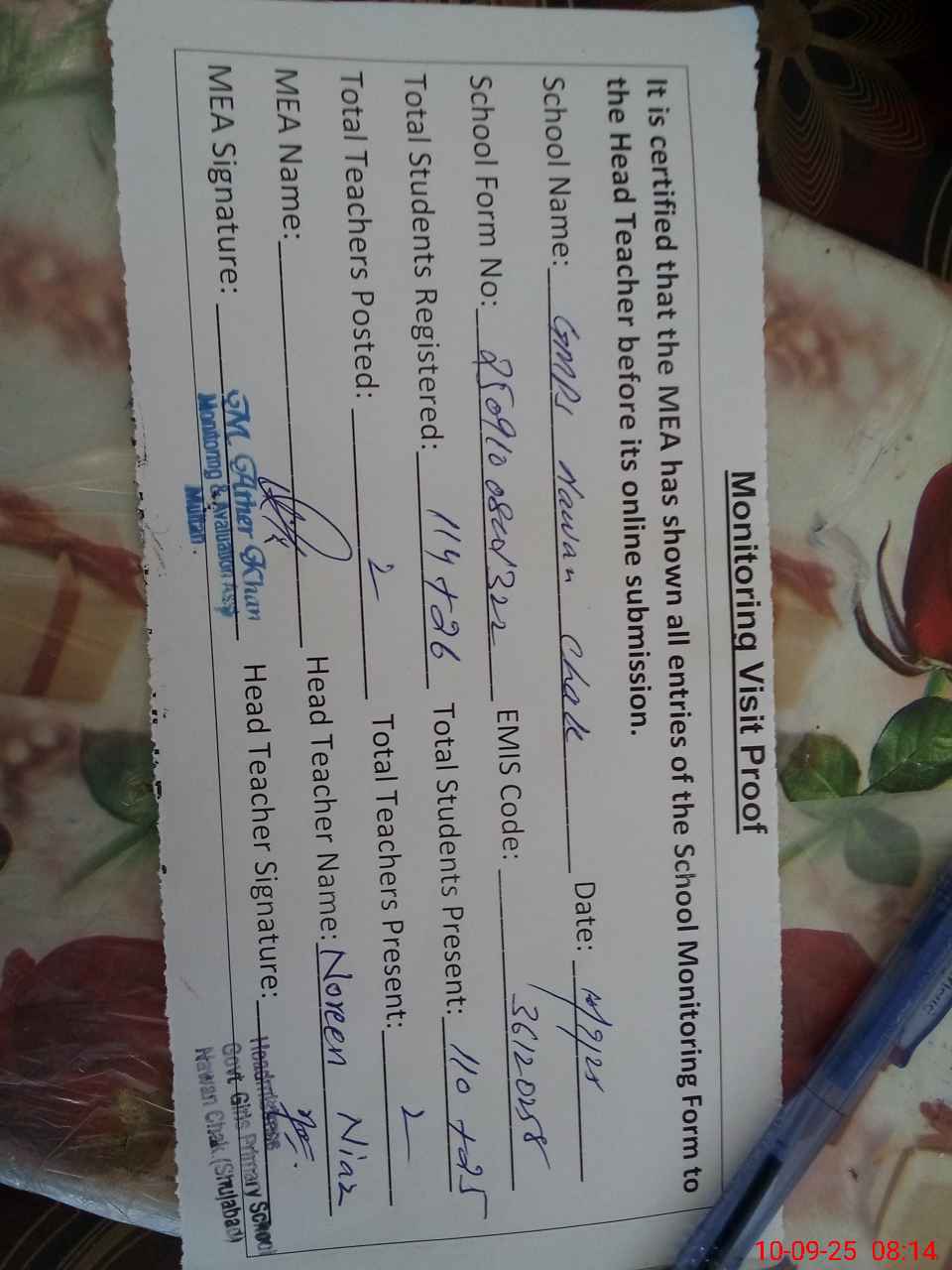 | EMIS Code: 36120258 | Name of School: GMPS NAWAN CHAK | |||