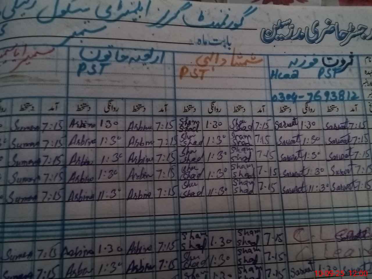 | Name: SA**** FO**** Designation: (School Headmaster's/Headmistress's) HEADMISTRESS Phone/Cell Number: 03**** |