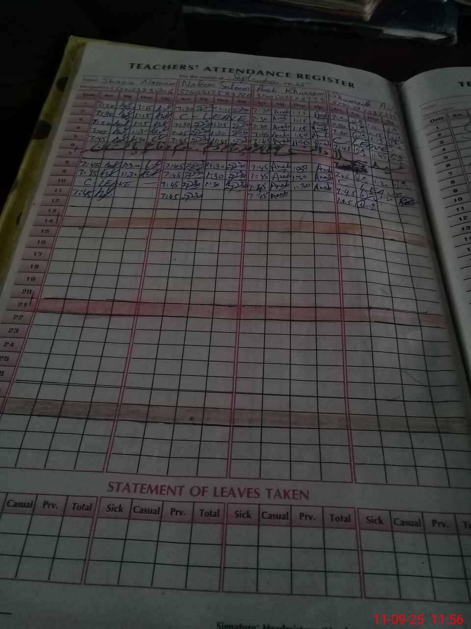 | CNIC | Full Name | Designation | R/C | Absence During Last Calender Month |