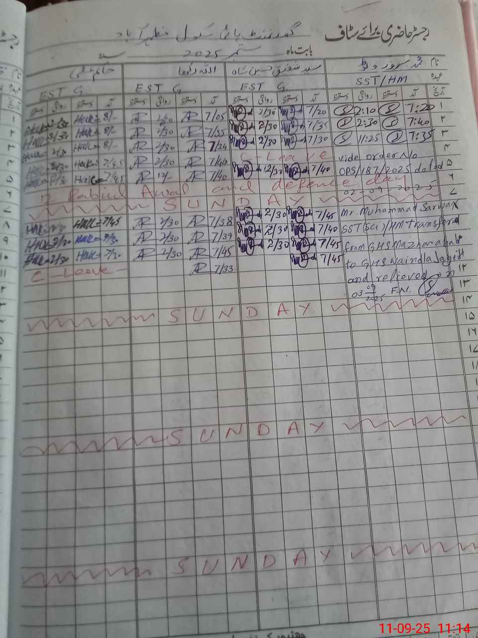 | CNIC | Full Name | Designation | R/C | Absence During Last Calender Month |