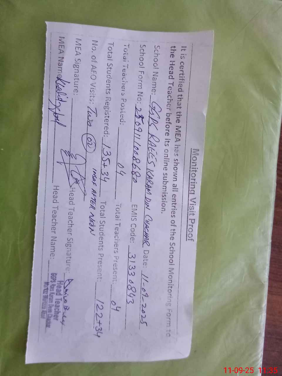 | EMIS Code: 31330843 | Name of School: GGPS RAEES KARAM DIN CHACHAR | |||