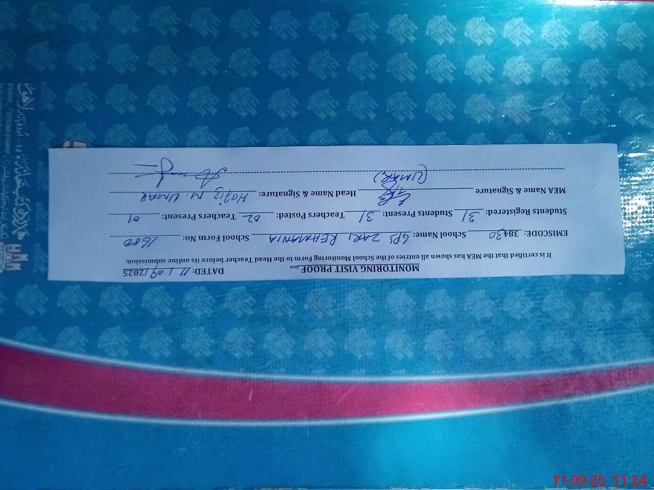 | EMIS Code: 38430152 | Name of School: GPS ZARI REHMAN SULTAN PUR | |||