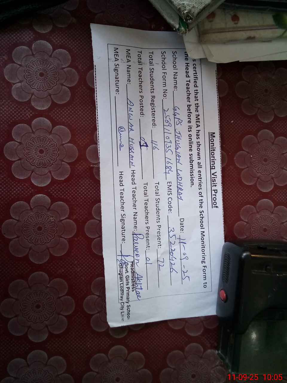 | EMIS Code: 35220426 | Name of School: GGPS JHUGIAN LODHRAY | |||