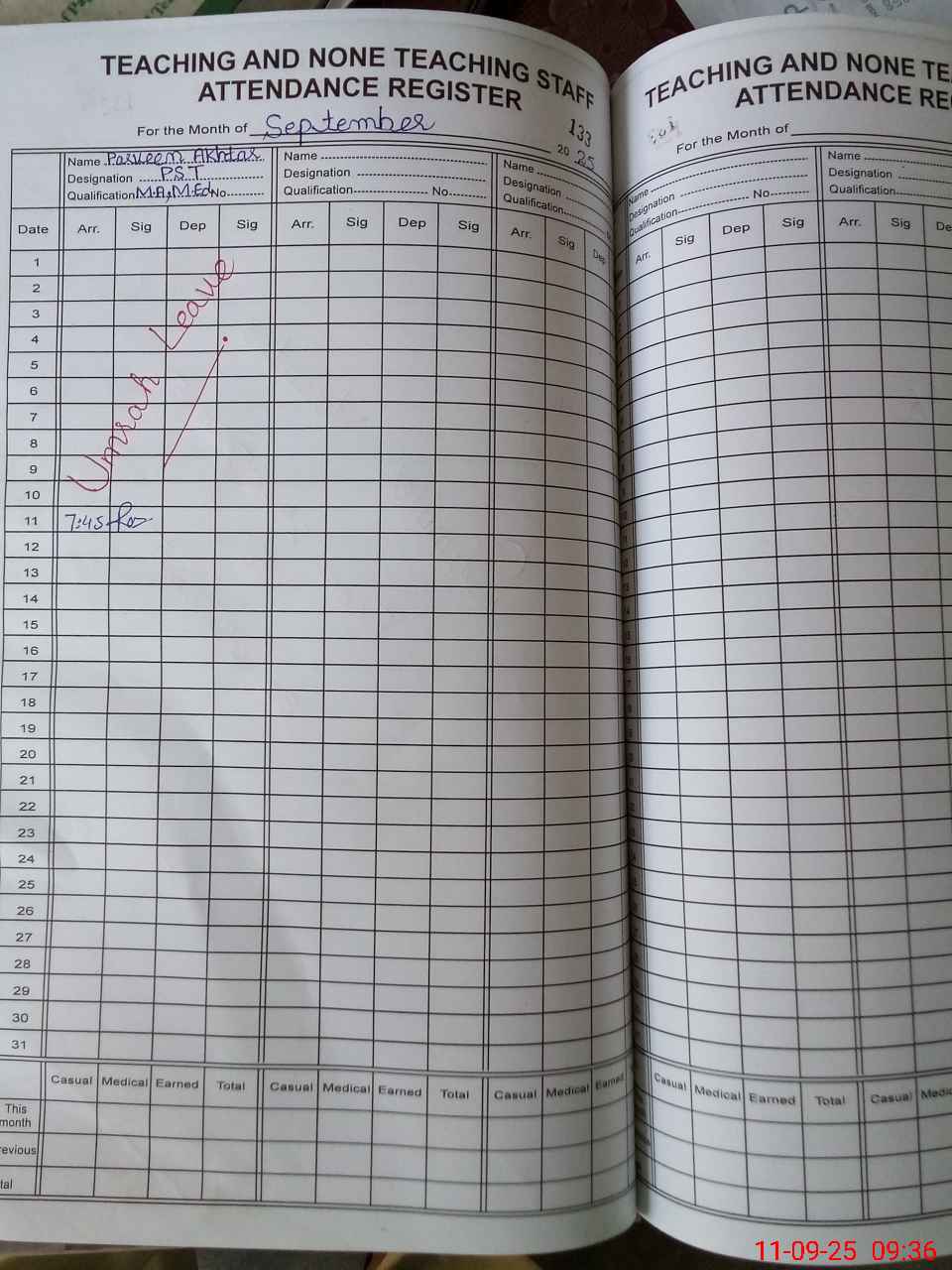 | Leave | Duty | Absent | Maternity | Medical | Ex- Pak |