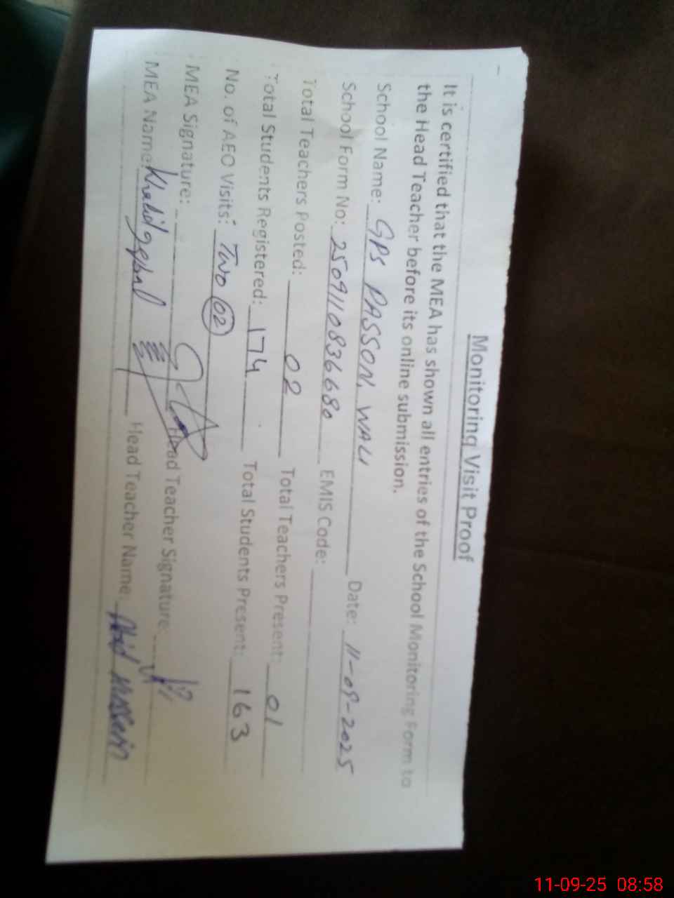 | EMIS Code: 31330485 | Name of School: GPS PASSON WALI | |||