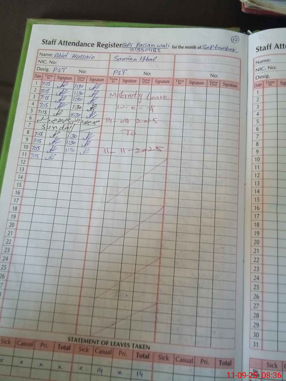 | 42**** | Sa**** Iq**** | PST | Regular | 0 | 0 | 0 | 0 | 0 | 0 | 0 | 0 | 0 | Maternity |