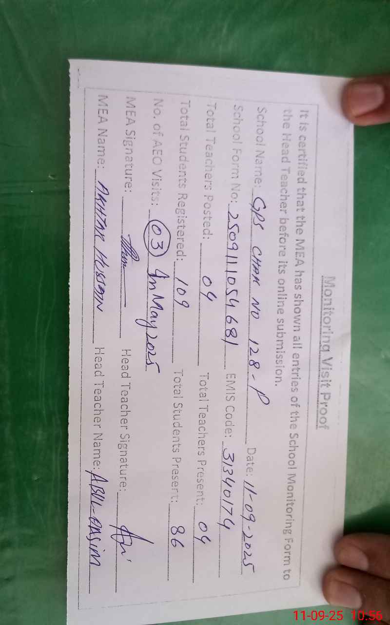 | EMIS Code: 31340174 | Name of School: GPS CHAK NO 128/P | |||