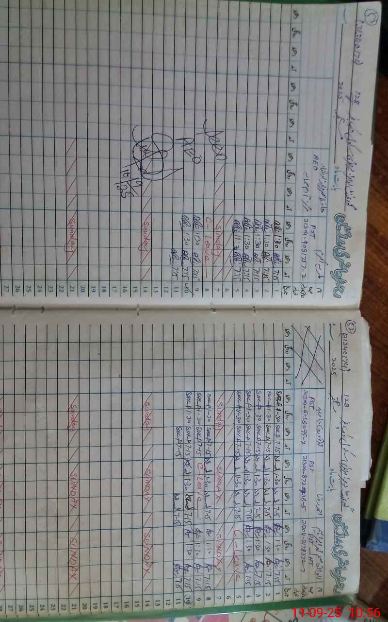 | CNIC | Full Name | Designation | R/C | Absence During Last Calender Month |