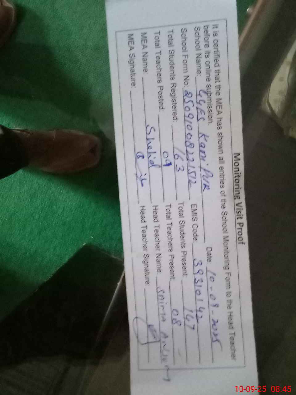 | EMIS Code: 39310142 | Name of School: GGES KANI PUR | |||