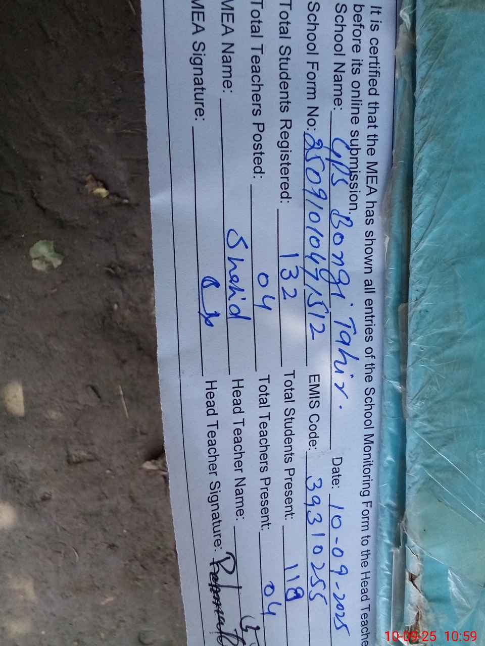 | EMIS Code: 39310255 | Name of School: GPS BONGI TAHIR | |||