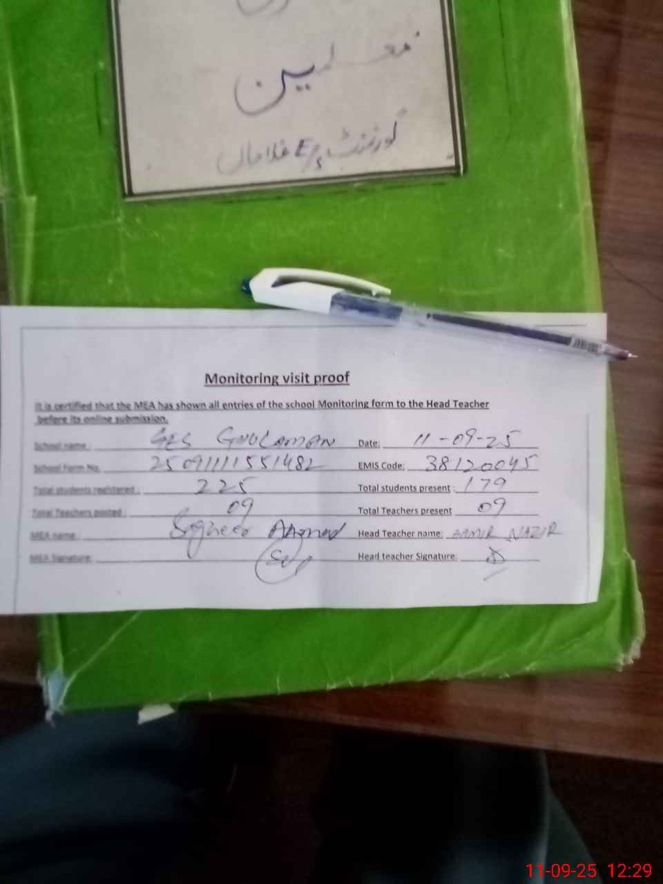 | EMIS Code: 38120045 | Name of School: GHS GHULAMAN | |||