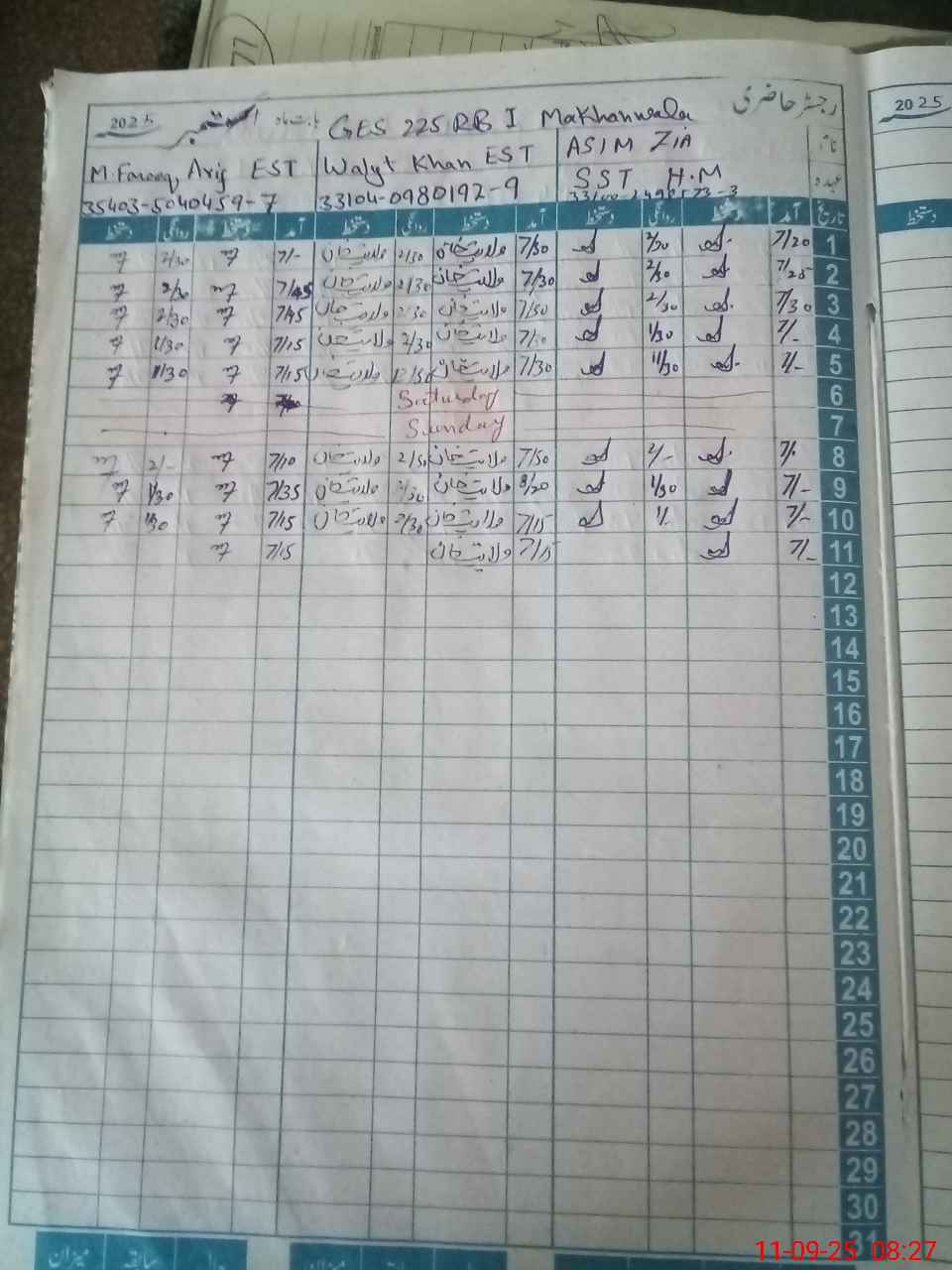 | Name: Mu**** Fa**** Ar**** Designation: (School Headmaster's/Headmistress's) EST Phone/Cell Number: 03**** |