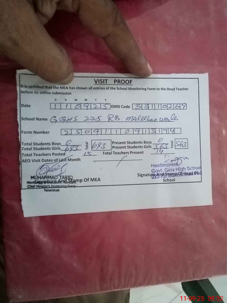 | EMIS Code: 33110269 | Name of School: GGHS CHAK NO 225 RB | |||
