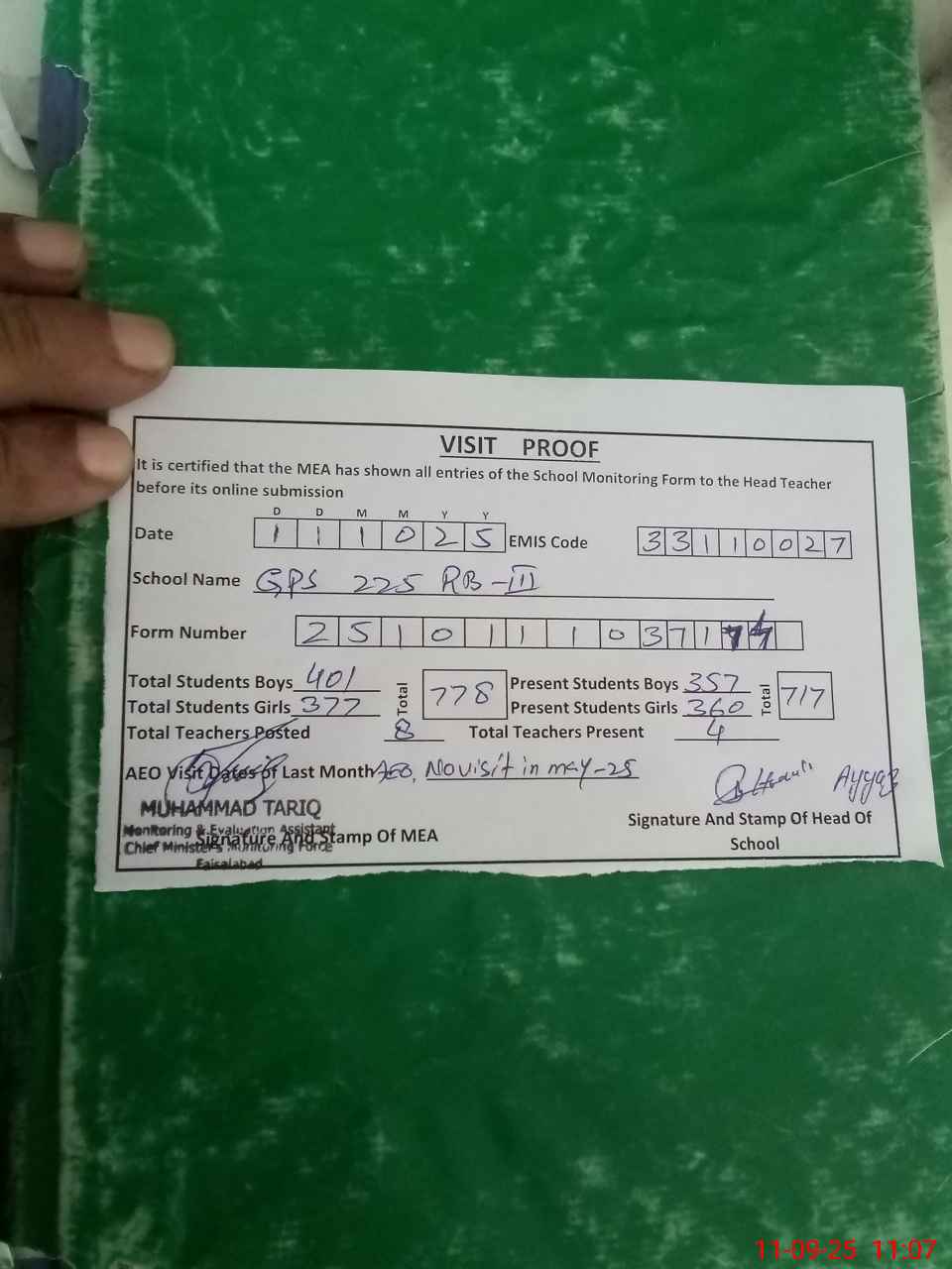 | Name: SH**** QA**** Designation: (School Headmaster's/Headmistress's) PST Phone/Cell Number: 03**** |