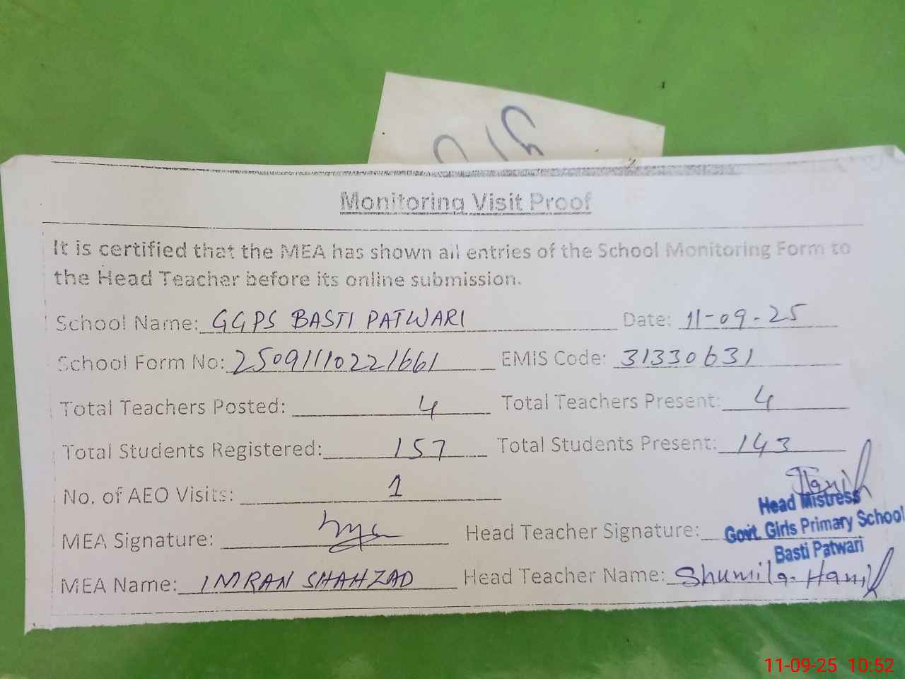 | EMIS Code: 31330631 | Name of School: GGPS BASTI PATWARI | |||