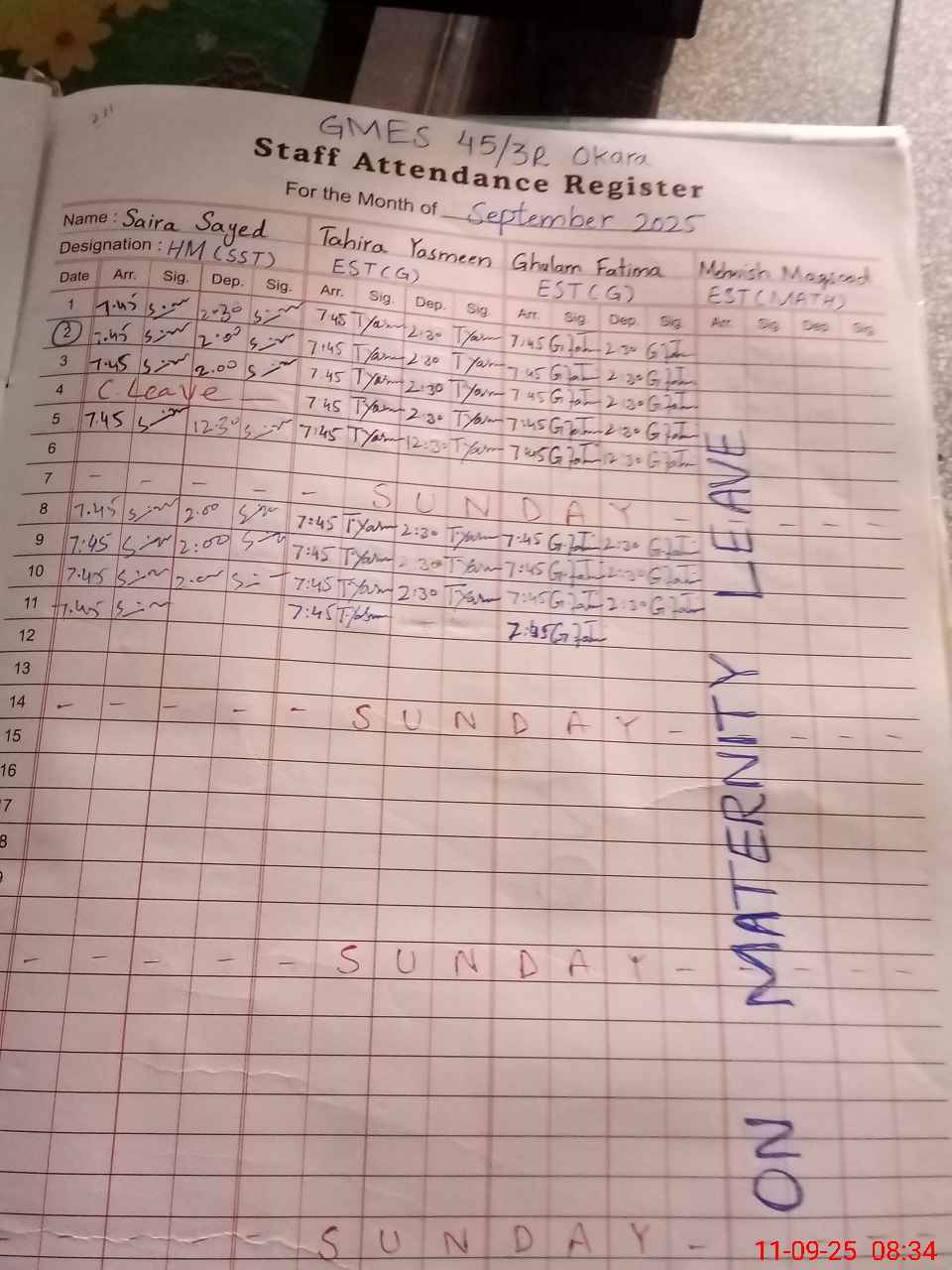 | Remarks (Use Separate Page if Required): 01 female teacher named Shazia sharief permanently posted at GMES 45 3R since January 2025 Now she is attached to ggps 13 4L as per attendance register since February 25 No written order available Her name is not exist in pmiu soft ware 02 female teachers temporarily attached to GMES 45 3R mentioned below Nada Ghulam Rasool Quraat Rasheed | |||||